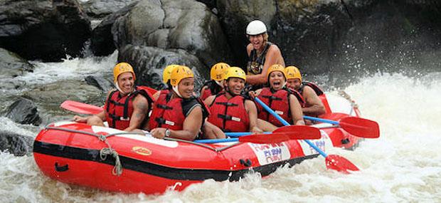 抵达巴伦峡漂流站点,经验丰富的漂流向导们将引领大家在此进行队员分组和简要说明。接下来超过一个半小时的时间,您都可以在峡谷深壑、湍急的水流中度过。短暂的漂流之旅却是观赏周遭景致的绝佳方式——随波徜徉在日光下彻的水流中,河水中有热带棕榈树巨大叶片的倒影,河边蔓藤覆盖的丛林茂密而湿润……
